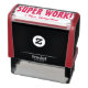 Este motivante diseño de sellos de goma incluye el motivador mensaje "¡SUPER TRABAJO!" y el nombre de un profesor personalizado o educador. Podría ser utilizado por un profesor, educador o tutor al marcar las asignaciones, para reconocer que el estudiante ha tenido un buen desempeño.