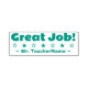 Este diseño positivo de sello de goma incluye el mensaje motivacional "¡Gran trabajo!" y un nombre de tutor personalizado. También tiene formas estelares decorativas. Podría ser utilizado por un profesor, educador, instructor o tutor al marcar las asignaciones, para indicar que el estudiante ha hecho un gran trabajo.