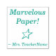 Este positivo diseño de sello de goma muestra el mensaje positivo "¡Papel maravilloso!" y el nombre de un profesor personalizado, educador o tutor. También tiene forma de estrella decorativa. Podría ser utilizado por un profesor de escuela, educador, instructor o tutor al marcar las asignaciones, para indicar que el estudiante ha tenido un buen desempeño.