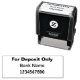 Sólo Para Depósito Sello De Autograbado Bancario/Cheque. Ahorre tiempo con este sello de sólo depósito, perfecto para transacciones bancarias personales o comerciales. Personaliza con el nombre del banco y el número de cuenta.