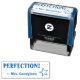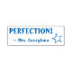 Este divertido diseño de sellos de goma muestra el mensaje positivo "¡PERFECCIÓN!" y un nombre personalizado del profesor. También cuenta con un icono decorativo de estrella. Podría ser utilizado por un profesor o educador al marcar las asignaciones, para reconocer que el estudiante ha hecho un gran trabajo.