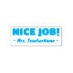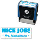 Este inspirador diseño de sellos de goma incluye el mensaje de retroalimentación motivacional "¡NICE JOB!" y el nombre de un profesor personalizado o educador. Podría ser utilizado por un profesor, educador o tutor al marcar asignaciones, para reconocer que el estudiante ha hecho un gran trabajo.