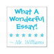 Este positivo diseño de sello de goma incluye el mensaje "¡Qué Maravilloso Ensayo!" y el nombre personalizado del profesor o educador. También tiene forma de estrella decorativa. Podría ser utilizado por un profesor, educador, instructor o tutor al marcar las asignaciones, para reconocer que el estudiante ha tenido un buen desempeño.