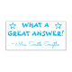 Este inspirador diseño de sellos de goma muestra el motivador mensaje "¡QUÉ GRAN RESPUESTA!" y el nombre de un profesor personalizado. Podría ser utilizado por un profesor de escuela, educador, instructor o tutor cuando califica el trabajo de un estudiante, para reconocer que un estudiante ha hecho un trabajo excepcional.