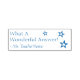 Este inspirador diseño de sellos de goma incluye el motivacional mensaje "¡Qué respuesta maravillosa!" y el nombre personalizado del profesor, educador o tutor. También tiene forma decorativa de contorno estelar. Podría ser utilizado por un profesor, educador o tutor cuando califica el trabajo de un estudiante, para indicar que un estudiante ha hecho un trabajo excepcional.