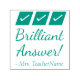 Este inspirador diseño de sellos de goma incluye el inspirador mensaje "¡Respuesta brillante!" y el nombre personalizado de un profesor, educador o tutor. También cuenta con una marca de verificación decorativa. Podría ser utilizado por un profesor de escuela, educador, instructor o tutor cuando califica el trabajo de un estudiante, para indicar que un estudiante ha hecho un trabajo excepcional.