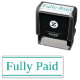 Este diseño básico del sello de caucho incluye el mensaje "Totalmente pagado". Tal vez podría utilizarse para indicar que se ha pagado íntegramente una factura o factura.