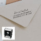 Un sello de autotinta simple y claro con tu nombre, apellido y dirección de la calle. Perfecto para vincular la dirección de retorno en notas de agradecimiento y cartas.