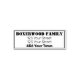 Un sello de dirección de retorno ligeramente masculino que incluye 4 líneas: Nombre (familia o persona), calle 1, calle 2, ciudad. El tipo de letra es fácil de leer, pero se puede personalizar fácilmente.