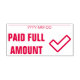 Este diseño de sello de goma incluye los mensajes "PAID FULL AMOUNT", junto con un símbolo de icono de marca de verificación y una línea donde se puede escribir una fecha de pago. Podría utilizarse para marcar que una factura o factura se ha pagado íntegramente.