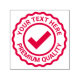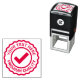 Sello de marca de verificación de la homologación de calidad del personalizado con autotinta. Personalice el texto de garantía o el nombre comercial del personalizado al 100%. Sello circular del diseño de la homologación con graduación. Excelente para documentos oficiales, diplomas auténticos, certificados, etiquetas y más. Se pueden cambiar los colores y el tipo de letra. Ejemplo rojo.