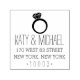 Embelligue sus fechas, invitaciones o invitaciones de la parte de compromiso con nuestro sello de dirección de retorno del anillo de compromiso con los diamantes, que incluye su nombre y detalles de la dirección de retorno en una moderna combinación de estilo escrito a mano y letras en bloques, coronada por un ilustracion de anillo de diamantes.