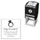 Embelligue sus fechas, invitaciones o invitaciones de la parte de compromiso con nuestro sello de dirección de retorno del anillo de compromiso con los diamantes, que incluye su nombre y detalles de la dirección de retorno en una moderna combinación de escritura caligráfica manuscrita y letras en bloques, coronada por un ilustracion de anillo de diamantes.