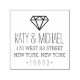 Embelligue sus fechas, invitaciones o invitaciones de la fiesta de compromiso con nuestro moderno sello de dirección de retorno de diamantes, que incluye su nombre y los detalles de la dirección de retorno en una moderna combinación de estilo manuscrito y letras en bloques, coronado por un ilustracion de diamante sencillo y gráfico.