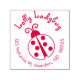 Este sello de goma redondo, personalizado, lindo y auto-tinta tiene una mariquita o ladybird con manchas. Tiene un nombre de ejemplo y una dirección de retorno. Las palabras forman un círculo alrededor de la mariquita. — Agregue su nombre y dirección en la plantilla para personalizar. Puede cambiar el estilo de letra si lo desea. Es posible que necesite ajustar el tamaño de las letras para que encajen. Haga clic en el botón personalizar o personalizar. — Esto también está disponible en sellos de goma rectangulares y regulares. Puedes elegir tu color de tinta. — Usa esto para toda tu correspondencia si te gustan los ladybugs, la naturaleza y el exterior, o los insectos y el jardín. O usarla para una ducha infantil o para un bebé. A los chicas les encanta este divertido diseño. — Ver más sellos de goma de dirección de retorno en el lápiz de Alina.