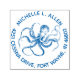 Sello de dirección de devolución redondo artístico para fanáticos de los pulpos. Este sello redondo preentintado está decorado con una ilustración de un pulpo con aspecto grabado en el centro y tomando el protagonismo. El nombre y la dirección se imprimen alrededor en un círculo. El texto es fácil de personalizar con su propio nombre y dirección o reemplazar con el texto de su elección.
