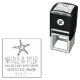 Embelligue sus invitaciones, tarjetas y correspondencia con nuestro sello de dirección de retorno de la moda costera, que incluye su nombre y los detalles de la dirección de retorno en una moderna combinación de estilo manuscrito y letras en bloques, coronado por un ilustracion de estrellas de estilo vintage para una apariencia de playa y verano.
