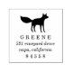 Nuestro sello de dirección de retorno de moda de bosque incluye los detalles de su dirección de retorno en letras clásicas coronadas por un ilustracion de silueta de zorro.