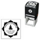 Personalizado vuelta dirección sellado para auto-tinta para un instructor de yoga, profesor de meditación u otro entusiasta del yoga o de la meditación. Decorada con un contorno de flores de loto y una silueta de una postura llena de loto sentada. Personalice su nombre y dirección personales o de negocios.