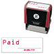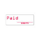 El diseño de este sello de caucho incluye el mensaje "Pagado" y una línea en la que se puede escribir una fecha de pago. Podría utilizarse para marcar que una factura o factura se ha pagado íntegramente.