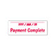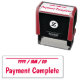 Este diseño básico de sellos de goma incluye los mensajes "Pago completado" y una línea donde se puede escribir una fecha de pago. Podría utilizarse para marcar que una factura o factura se ha pagado íntegramente.