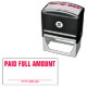 Este diseño básico de sellos de goma incluye los mensajes "PAID FULL AMOUNT" y una línea donde se puede escribir una fecha de pago. Tal vez podría utilizarse para indicar que se ha pagado íntegramente una factura o factura.