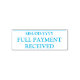 Este diseño de sello de goma mínimo incluye los mensajes "PAGO COMPLETO RECIBIDO" y una línea donde se puede escribir una fecha de pago. Tal vez podría utilizarse para indicar que se ha pagado íntegramente una factura o factura.