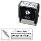 Un sello entintado automático simple y elegante de "pagado por completo" que se puede personalizar con su propio texto. Personalice aún más con el color de la tinta. Un sello entintado automático perfecto de notaría "pagado por completo" con pluma de ave.