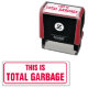 Este tonto diseño de sello de goma muestra el dicho "ESTO ES BASURA TOTAL" dentro de un rectángulo con esquinas redondeadas.