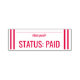 Este diseño básico y sencillo de sello de goma incluye los mensajes "STATUS: PAID" y una línea donde se puede escribir una fecha de pago. Podría utilizarse para marcar que una factura o factura se ha pagado íntegramente.