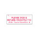 Este diseño de sello de goma lisa incluye el mensaje "POR FAVOR, RÓTULO y REGRESO PRONTO A", junto con una línea para una firma o iniciales que se escribirán arriba. También cuenta con un nombre de tutor personalizado. Tal vez podría ser utilizado por un educador, tutor o profesor para solicitar que los padres o tutores de un estudiante comprueben el trabajo del alumno en un examen, un examen, un proyecto u otra asignación escolar.