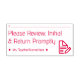 Este respetable diseño de sello de goma incluye el mensaje "Revise, Inicial y Regresa sin demora", además de una línea para una firma o iniciales que se escribirán arriba. También incluye el nombre de un profesor personalizado. Puede ser utilizado por un tutor, educador o profesor para pedir a los padres o tutores de un estudiante que revisen y reconozcan la nota que un estudiante obtuvo en un proyecto, un examen, un examen, un ensayo o algún otro trabajo escolar.