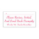 Este diseño tradicional de sellos de goma incluye el mensaje "Revise, Inicial y Envíe de vuelta rápidamente", además de una línea para una firma o iniciales que se escribirán más arriba. También cuenta con un educador personalizado o el nombre del profesor. Tal vez podría ser utilizado por un tutor, educador o profesor para solicitar que los padres o tutores de un estudiante revisen el trabajo del estudiante en un proyecto, un examen, un ensayo u otra tarea escolar.