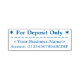 Este respetable diseño de sello de goma incluye el mensaje "Sólo para depósito", además de un nombre personalizado y un número de cuenta. Podría ser utilizado por un propietario de una pequeña empresa, un operador de una pequeña empresa o un empleado financiero para añadir rápidamente un respaldo restrictivo a un cheque.