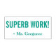 Este motivador diseño de sellos de goma incluye el motivador mensaje "¡SUPERB WORK!" y el nombre de un educador personalizado. Podría ser utilizado por un profesor, educador o tutor al marcar asignaciones, para indicar que el estudiante ha hecho un gran trabajo.