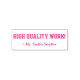 Este motivador diseño de sellos de goma incluye el motivador mensaje "¡TRABAJO DE ALTA CALIDAD!" y un nombre de educador personalizado. Podría ser utilizado por un profesor, educador o tutor al marcar asignaciones, para indicar que el estudiante ha hecho un gran trabajo.