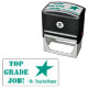 Este diseño de sello de goma positivo incluye el mensaje inspirador "TOP GRADE JOB!" y el nombre de un tutor personalizado. También tiene forma de estrella decorativa. Podría ser utilizado por un profesor, educador, instructor o tutor al marcar las asignaciones, para reconocer que el estudiante ha tenido un buen desempeño.