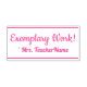 Este inspirador diseño de sellos de goma incluye el inspirador mensaje de retroalimentación "¡Trabajo ejemplar!" y el nombre de un profesor personalizado. Podría ser utilizado por un profesor o educador escolar al calificar el trabajo de un estudiante, para reconocer que un estudiante ha hecho un trabajo excepcional.