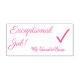 Este inspirador diseño de sellos de goma incluye el motivador mensaje "¡Trabajo excepcional!" y el nombre personalizado del profesor. También cuenta con una marca de verificación decorativa. Podría ser utilizado por un profesor de escuela, educador o tutor cuando califica el trabajo de un estudiante, para indicar que un estudiante ha hecho un trabajo excepcional.