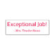 Este inspirador diseño de sellos de goma incluye el motivador mensaje "¡Trabajo excepcional!" y el nombre de un educador personalizado. Podría ser utilizado por un profesor, educador o tutor al calificar el trabajo estudiantil, para reconocer que un estudiante ha hecho un trabajo excepcional.