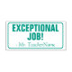 Este motivador diseño de sellos de caucho muestra el mensaje positivo "¡TRABAJO EXCEPCIONAL!" y el nombre de un educador personalizado. Podría ser utilizado por un profesor, educador o tutor cuando califica el trabajo de un estudiante, para indicar que un estudiante ha hecho un trabajo excepcional.