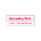 Este motivador diseño de sellos de goma incluye el motivador mensaje "¡Trabajo destacado!" y el nombre personalizado del profesor. Podría ser utilizado por un profesor de escuela, educador, instructor o tutor cuando califica el trabajo de un estudiante, para indicar que un estudiante ha hecho un trabajo excepcional.