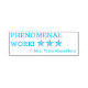 Este inspirador diseño de sellos de goma incluye el motivador mensaje "¡TRABAJO FENÓMENO!" y el nombre personalizado del profesor. También cuenta con iconos decorativos de estrellas. Podría ser utilizado por un profesor, educador, instructor o tutor al marcar las asignaciones, para indicar que un estudiante ha tenido un buen desempeño.
