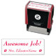 Este diseño de sello de goma alentador presenta el mensaje inspirador "¡Trabajo Increíble!" y un nombre de educador personalizado. También cuenta con un icono de flor decorativo. Puede ser utilizado por un maestro de escuela, educador o tutor al calificar tareas, para reconocer que el estudiante ha hecho un buen trabajo.