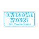 Este motivante diseño de sellos de goma incluye el mensaje de elogio "AWESOME WORK!" y un nombre de tutor personalizado. Podría ser utilizado por un profesor, educador o tutor al marcar las asignaciones, para reconocer que un estudiante ha tenido un buen desempeño.