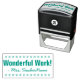 Este divertido diseño de sellos de goma incluye el motivacional mensaje de retroalimentación "¡Trabajo maravilloso!" y el nombre de un educador personalizado. También tiene forma decorativa de contorno estelar. Podría ser utilizado por un profesor de escuela, educador o tutor al marcar las asignaciones, para reconocer que el estudiante ha tenido un buen desempeño.