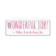 Este motivante diseño de sellos de goma incluye el motivador mensaje "¡TRABAJO MARAVILLOSO!" y el nombre personalizado del profesor o educador. También cuenta con una marca de verificación decorativa. Podría ser utilizado por un profesor, educador, instructor o tutor al marcar las asignaciones, para indicar que el estudiante ha tenido un buen desempeño.