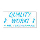 Este motivante diseño de sellos de goma incluye el inspirador mensaje "¡TRABAJO DE CALIDAD!" y el nombre de un tutor personalizado. También cuenta con una nota musical decorativa. Podría ser utilizado por un profesor o educador al marcar las asignaciones, para reconocer que el estudiante ha tenido un buen desempeño.
