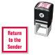 El diseño de este sello de goma lisa incluye el mensaje "Volver al remitente". Podría utilizarse para indicar que el correo recibido se ha entregado a la dirección equivocada o a un destinatario desconocido, y debe devolverse al remitente.