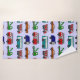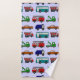 Este juego de toallas incluye un lavabo rojo, una toalla de mano azul y una toalla de baño con un diseño de novedad de camiones y autobuses en rojo, azul, verde y marrón sobre un campo de azul claro.